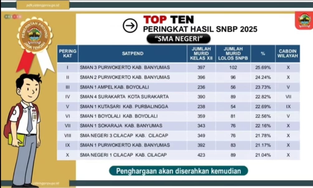 Prestasi masuk Top Ten SNBP Jawa Tengah 2025 diharapkan dapat menjadi motivasi bagi seluruh warga sekolah, khususnya siswa kelas X dan XI, untuk terus berusaha dan mempersiapkan diri sejak dini. Sekolah berkomitmen untuk terus meningkatkan mutu pendidikan agar semakin banyak lulusan yang berhasil melanjutkan pendidikan ke perguruan tinggi negeri melalui jalur prestasi.